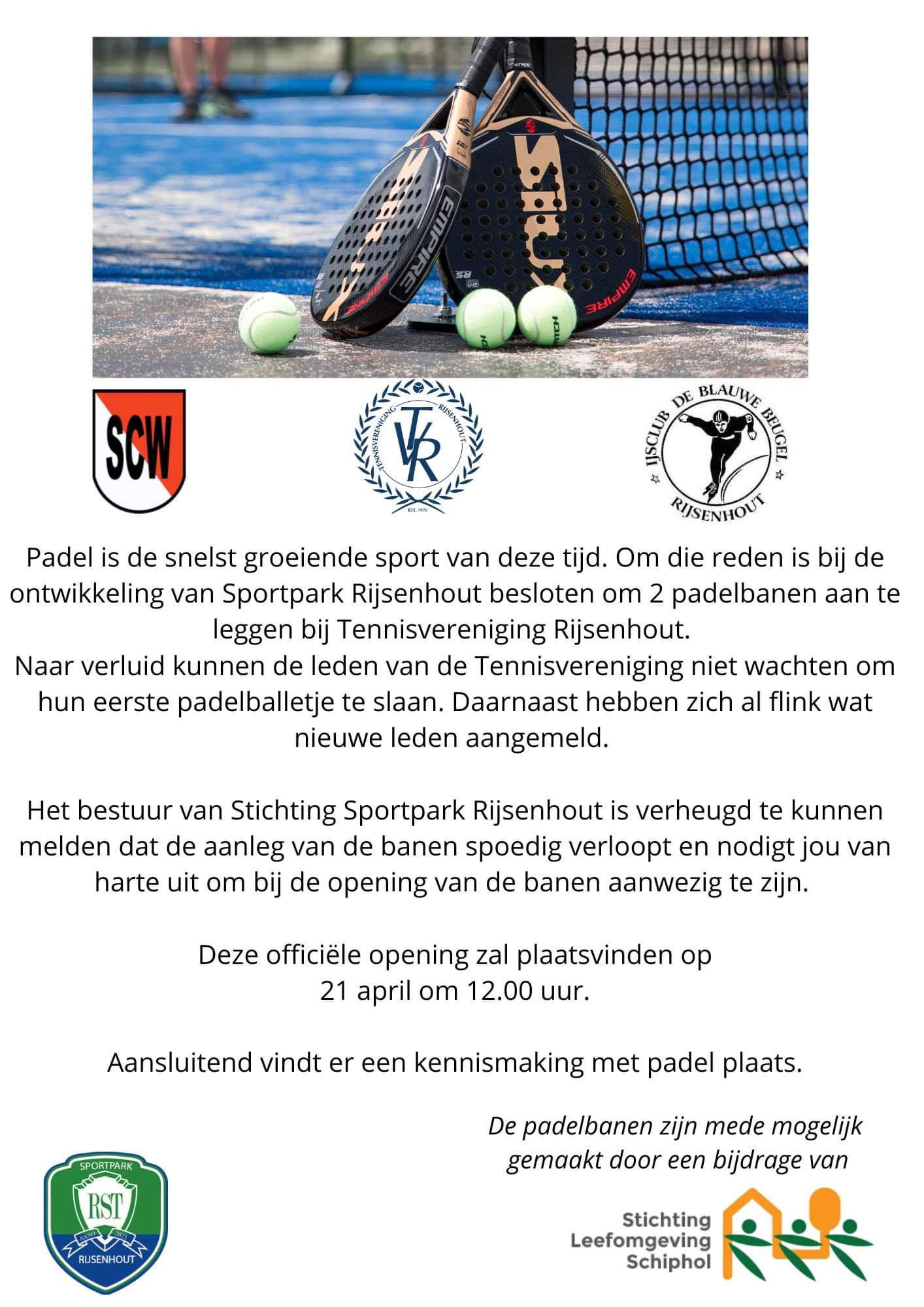 🎾 21 april om 12.00 uur is de officiële opening van de padelbanen